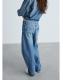 Tejido de algodón estilo tejano vaquero. Fit slouchy. Diseño largo. Diseño balloon. Tiro medio. Trabillas. Cinco bolsillos. Cierre delantero de cremallera y botón. Largo interior 80,5 cm