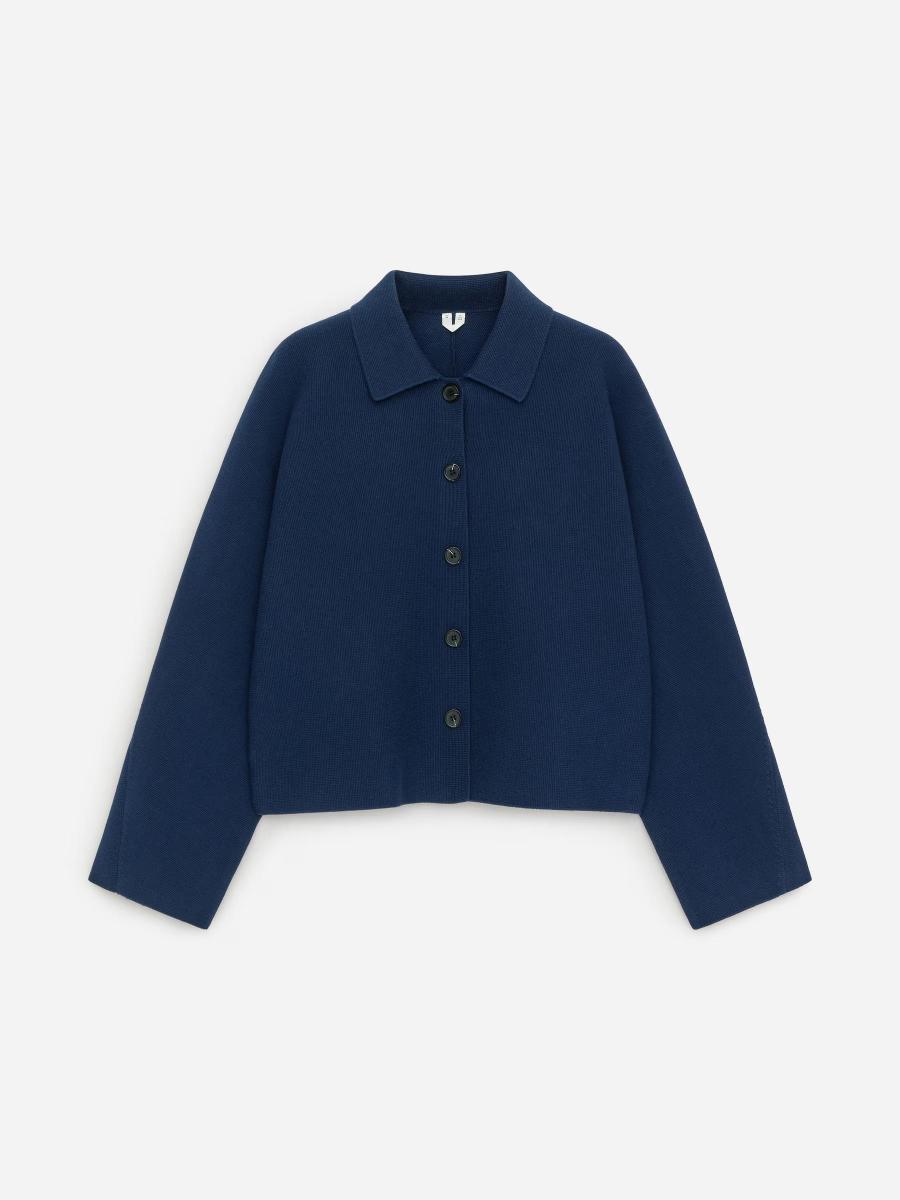 A refined essential, this knitted jacket is crafted from cotton and designed with a classic shirt collar and buttoned front.ARKET/Women's clothes/Women's coats and jackets/Women's jackets