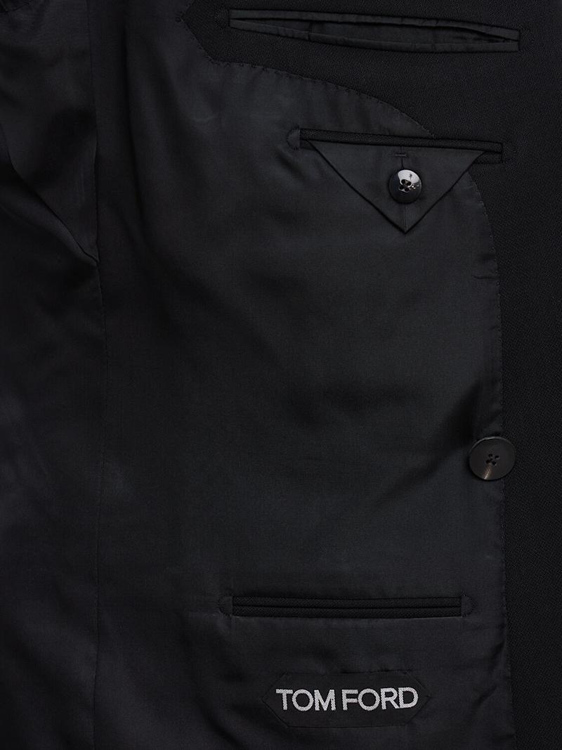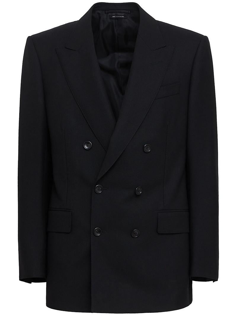 双排扣斜纹夹克 - 黑色 - 男士 - Tom Ford - 正面纽扣开合.