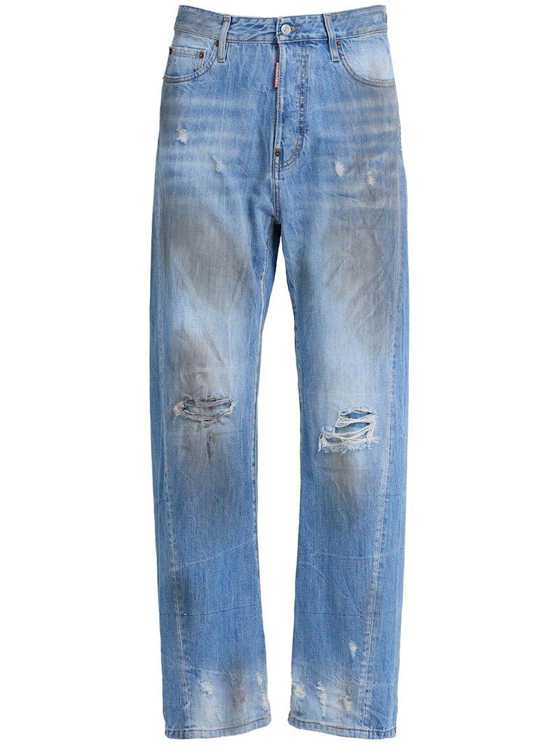 宽松扭曲设计牛仔裤 - 海军蓝 - 男士 - Dsquared2 - 正面纽扣和隐藏式拉链开合.
