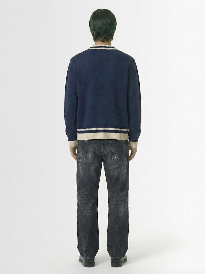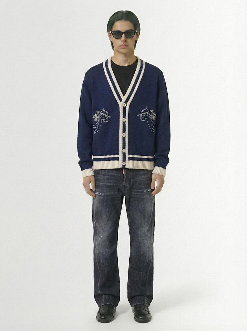Double cupid embroidered wool cardigan - 海军蓝 - 男士 - Fiorucci - Front button closure.