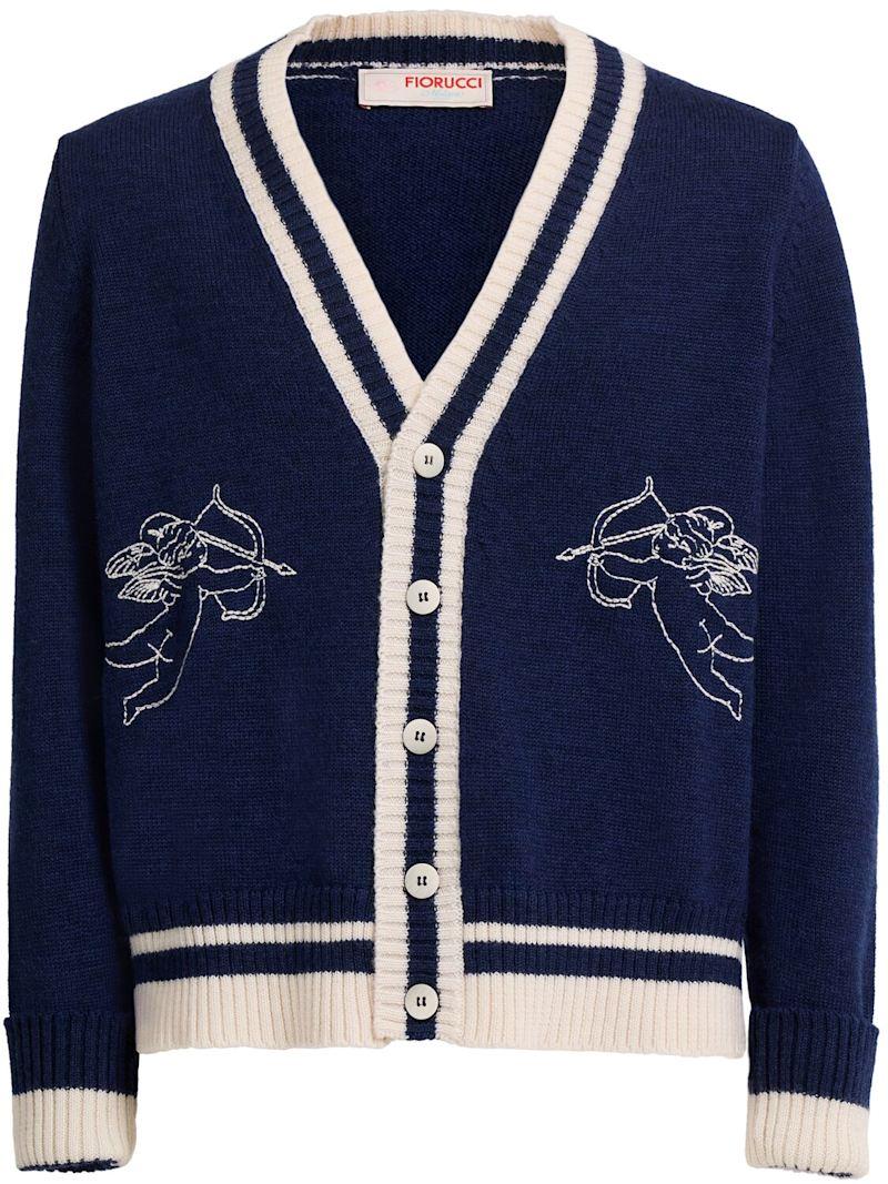Double cupid embroidered wool cardigan