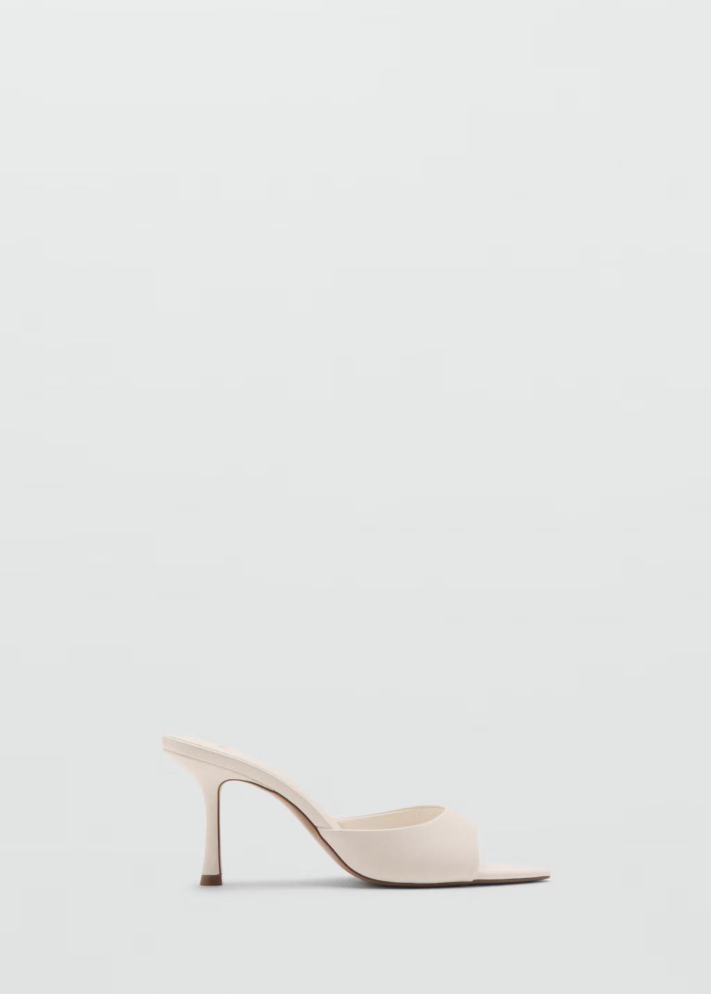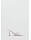 Efecto piel. Diseño destalonado. Con punta. Abertura en la parte delantera. El tacón mide 8 cm. Sin cierre. Forro interior