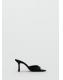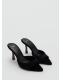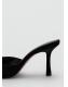 Tejido de terciopelo. Diseño destalonado. Diseño de tira. Puntera abierta. Tacón de aguja. Sin cierre. El tacón mide 8 cm