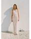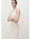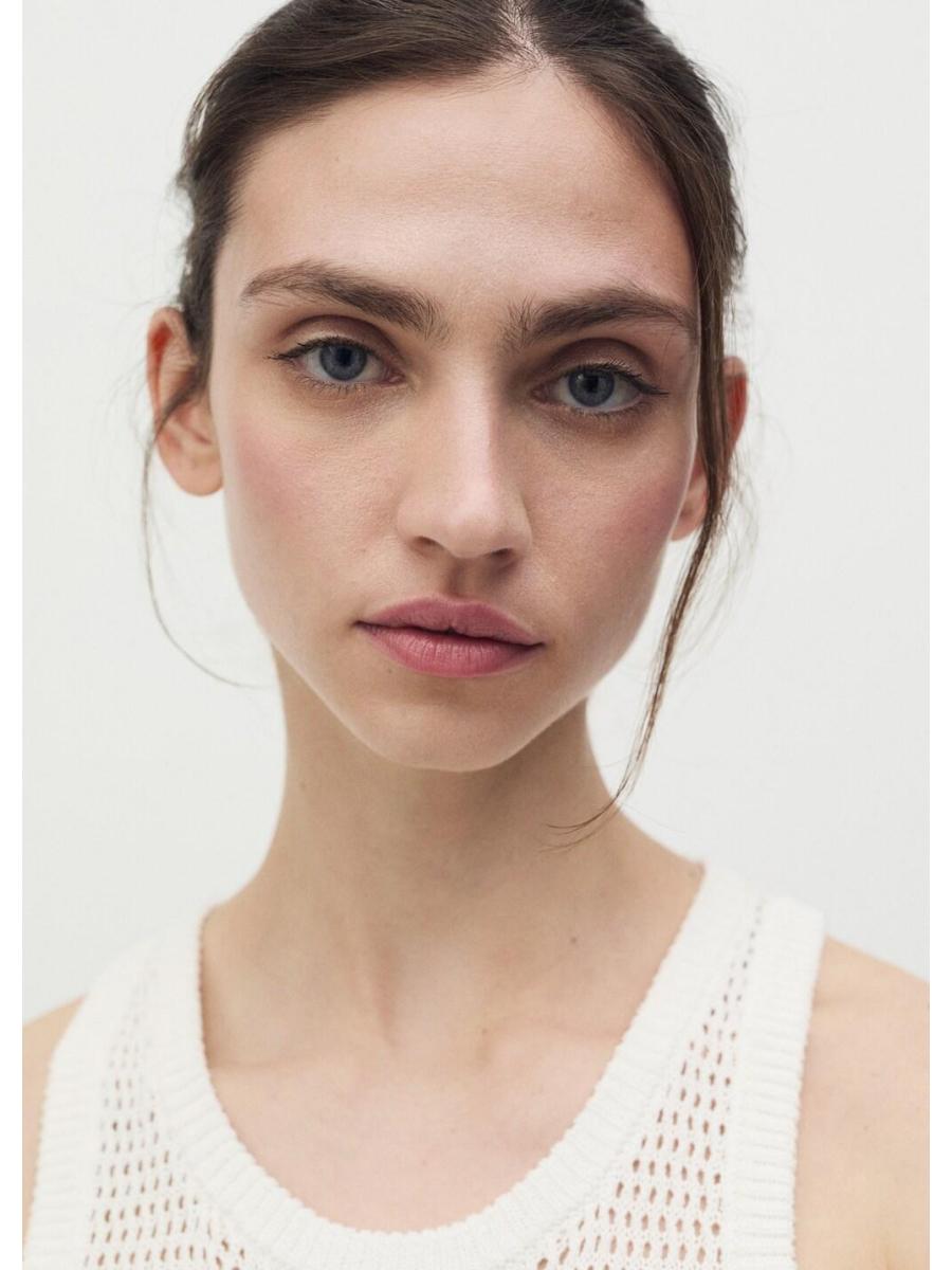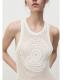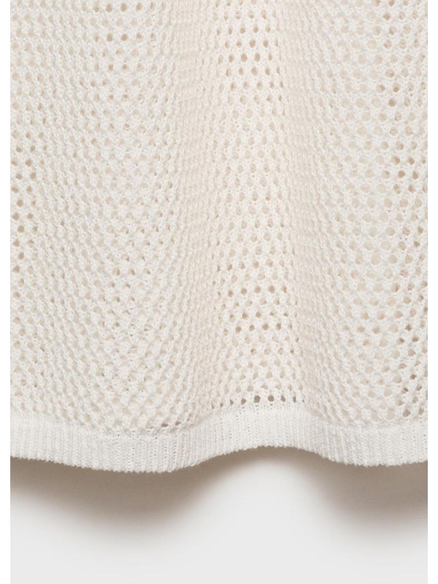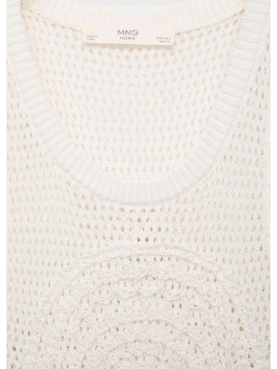 Tejido mezcla de algodón. Tejido de crochet. Diseño midi. Diseño recto. Dibujo bordado. Cuello redondo. Sin mangas. Sin cierre