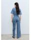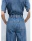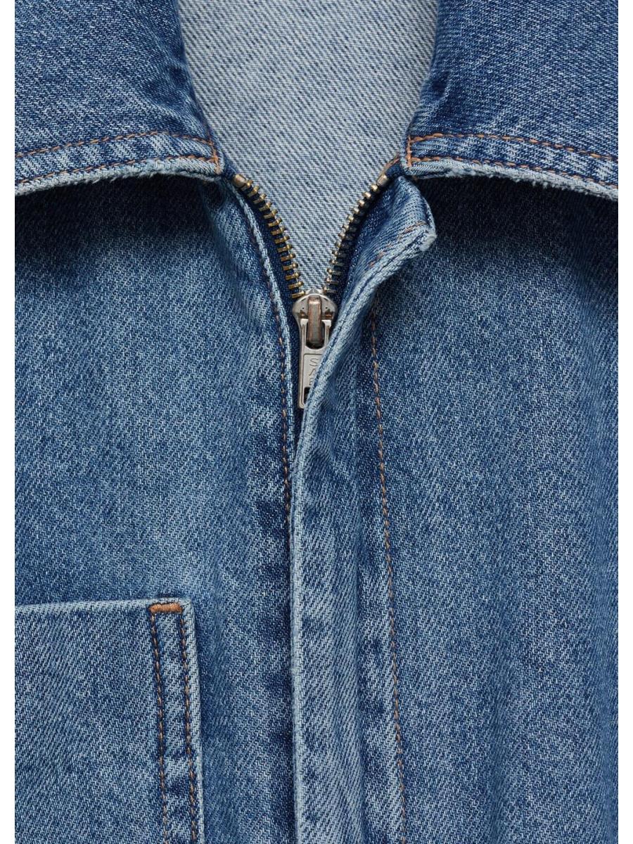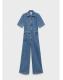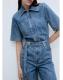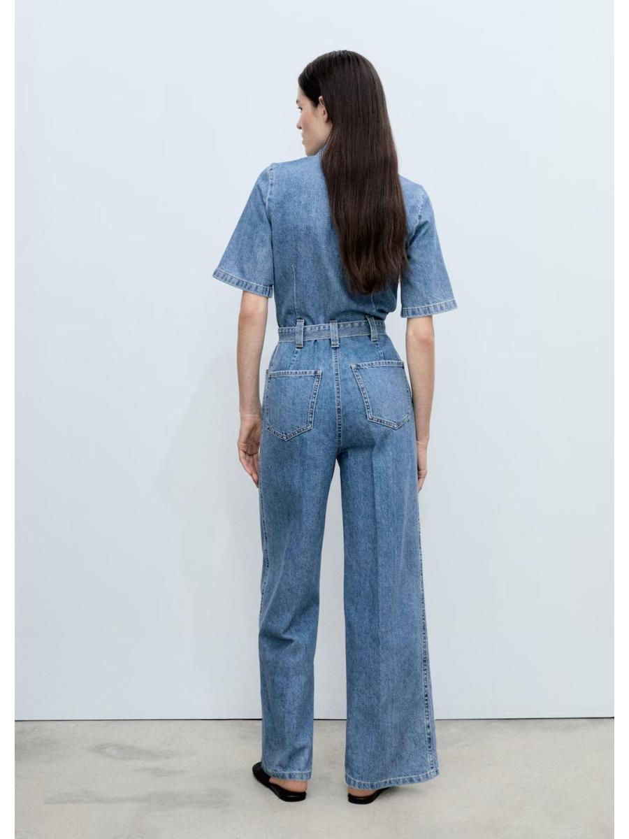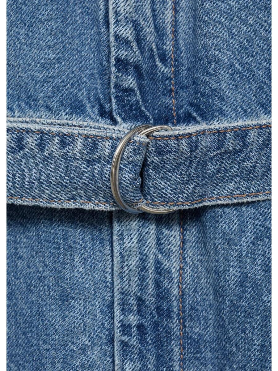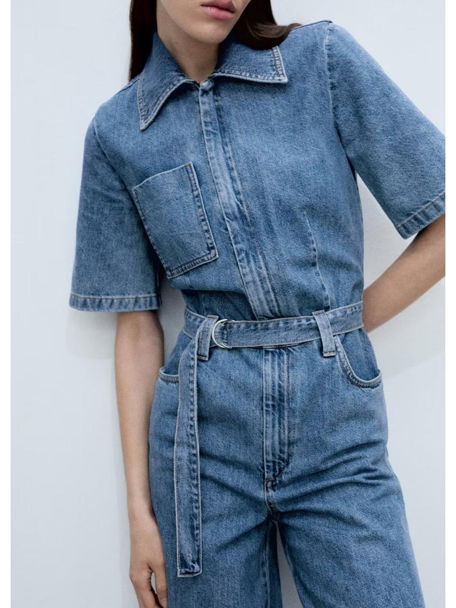 Tejido de algodón estilo tejano vaquero. Diseño largo. Diseño recto. Cuello camisero. Manga corta. Bolsillo de parche en el pecho. Trabillas. Cinturón ajustable. Cierre oculto de cremallera en la parte delantera
