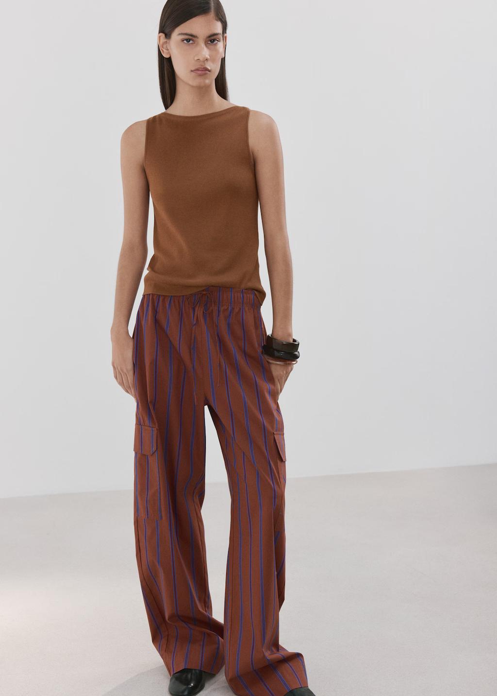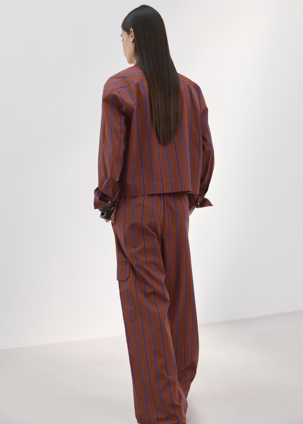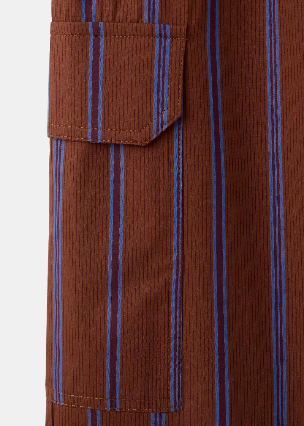 Tejido de algodón. Diseño cargo. Estampado de rayas. Dos bolsillos de solapa laterales. Cintura ajustable con goma. Total look