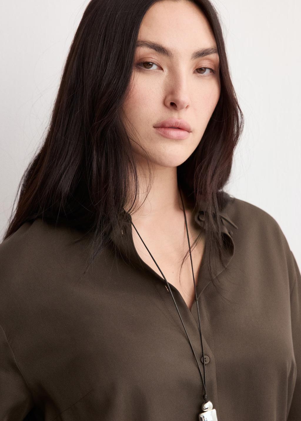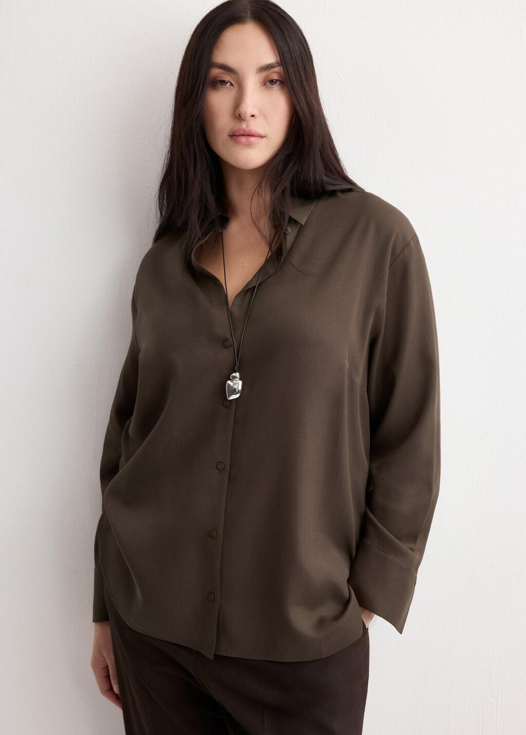 Tejido de lyocell. Diseño largo. Diseño recto. Cuello camisero. Manga larga con puños abotonados. Cierre delantero con botones. Disponible Plus