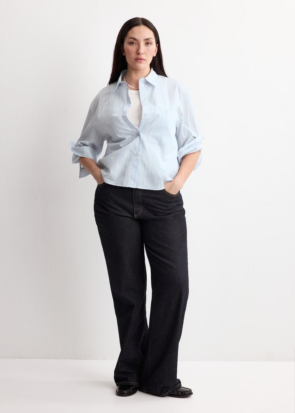 Tejido 100% algodón. Diseño recto. Estampado Rayas. Cuello camisero. Manga larga con puños abotonados. Cierre delantero con botones. Disponible Plus