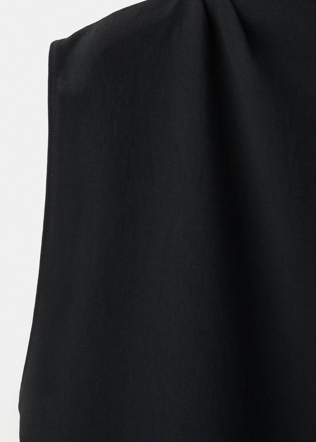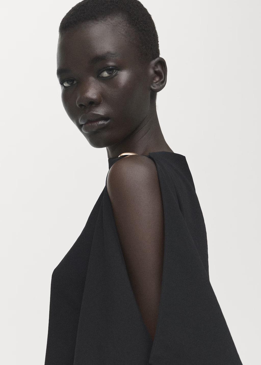 Diseño recto. Cuello asimétrico. Sin mangas. Tirante ancho. Cierre de botón en el cuello. Detalle metálico
