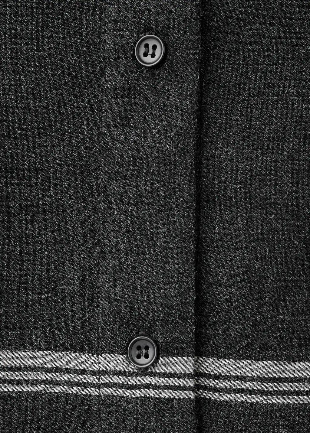 Diseño recto. Estampado de cuadros. Adorno de fular en el cuello. Manga larga. Cierre delantero con botones