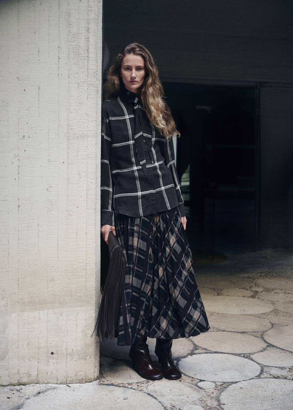 Blusa cuadros cuello fular