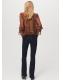 Tejido semitransparente. Diseño recto. Diseño crop. Estampado floral. Cuello de pico. Detalle de lazo en el cuello. Manga larga con volante en los puños. Cierre de nudo en la parte frontal