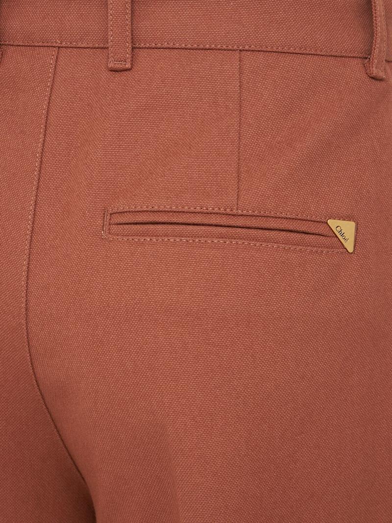棉质帆布高腰长裤 - 棕色 - 女士 - Chloé - 正面纽扣和隐藏式拉链开合.