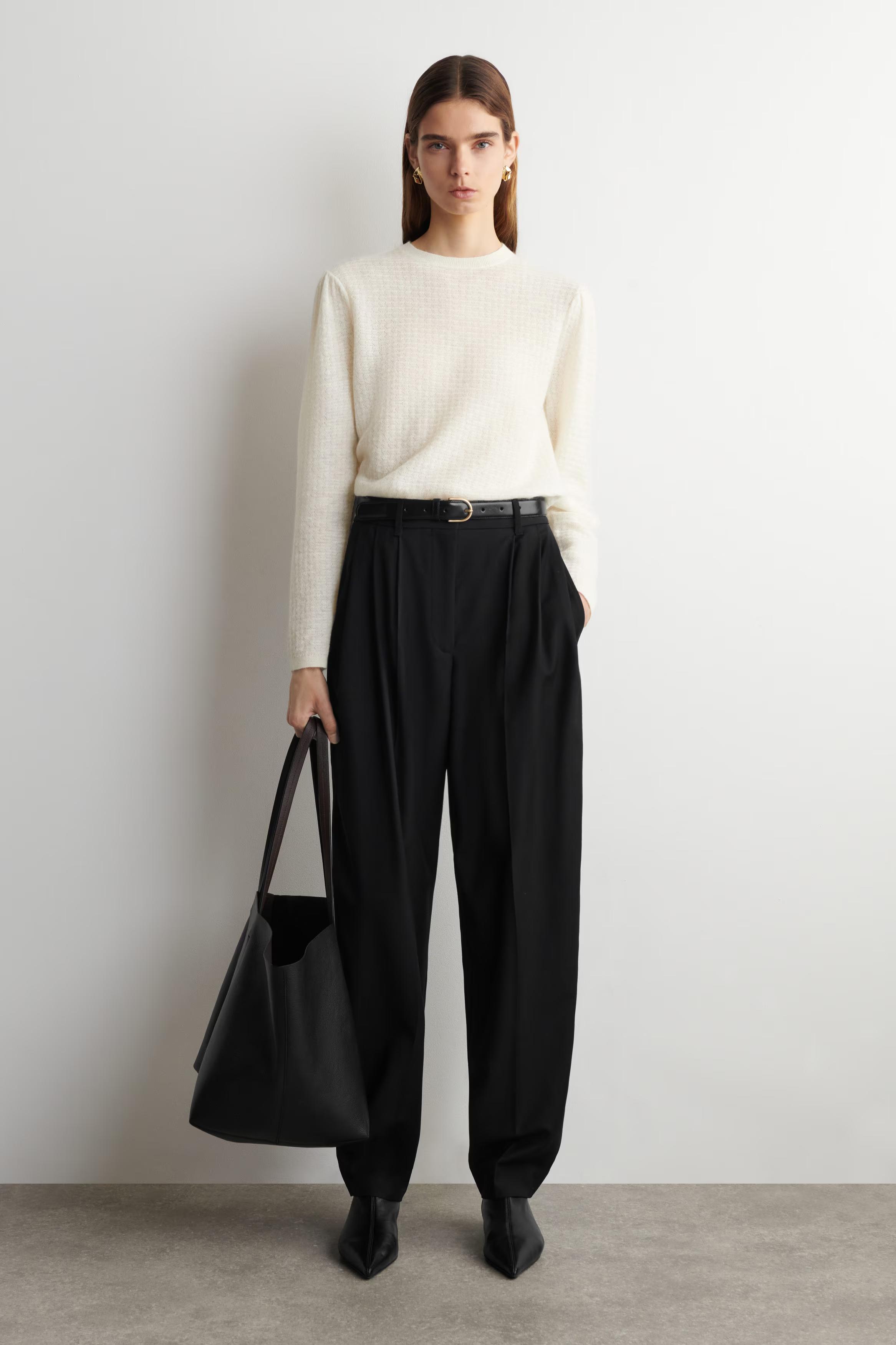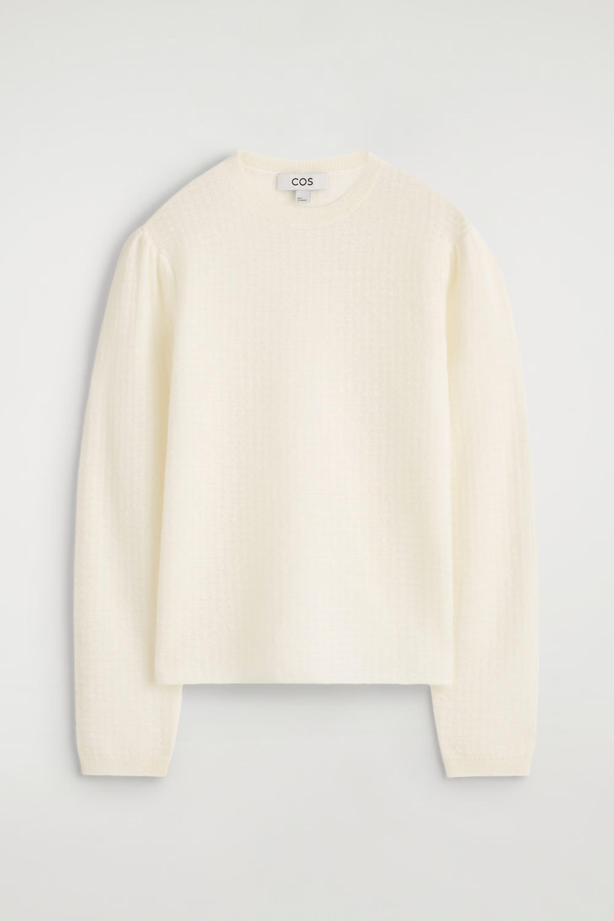 Elevated through unexpected details, this jumper is made with tactile mohair and merino wool in a textured zigzag knit. It's designed with a rounded neckline, ribbed trims and lightly gathered shoulders that lend a touch of volume.\u0026nbsp;\u0026nbsp;Regular fitButton closureMachine wash\u0026nbsp;Front length of size S is 57cm / Model wears a size S