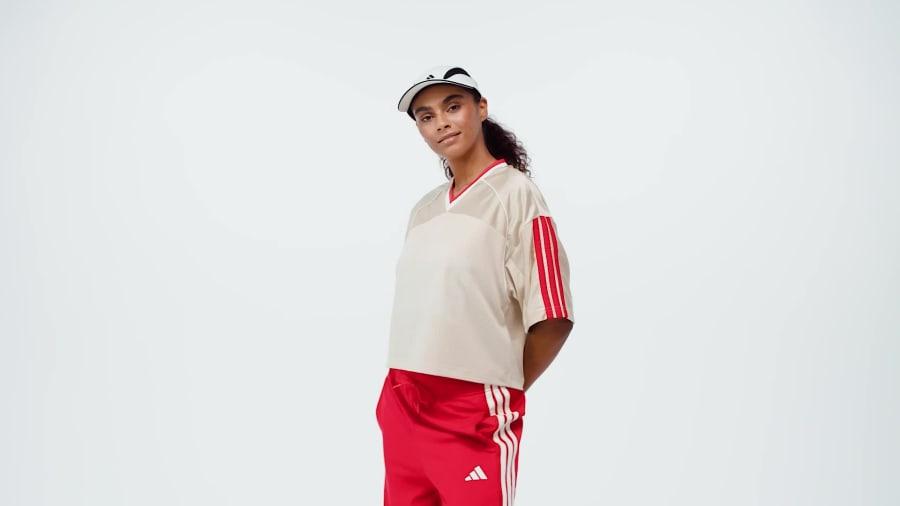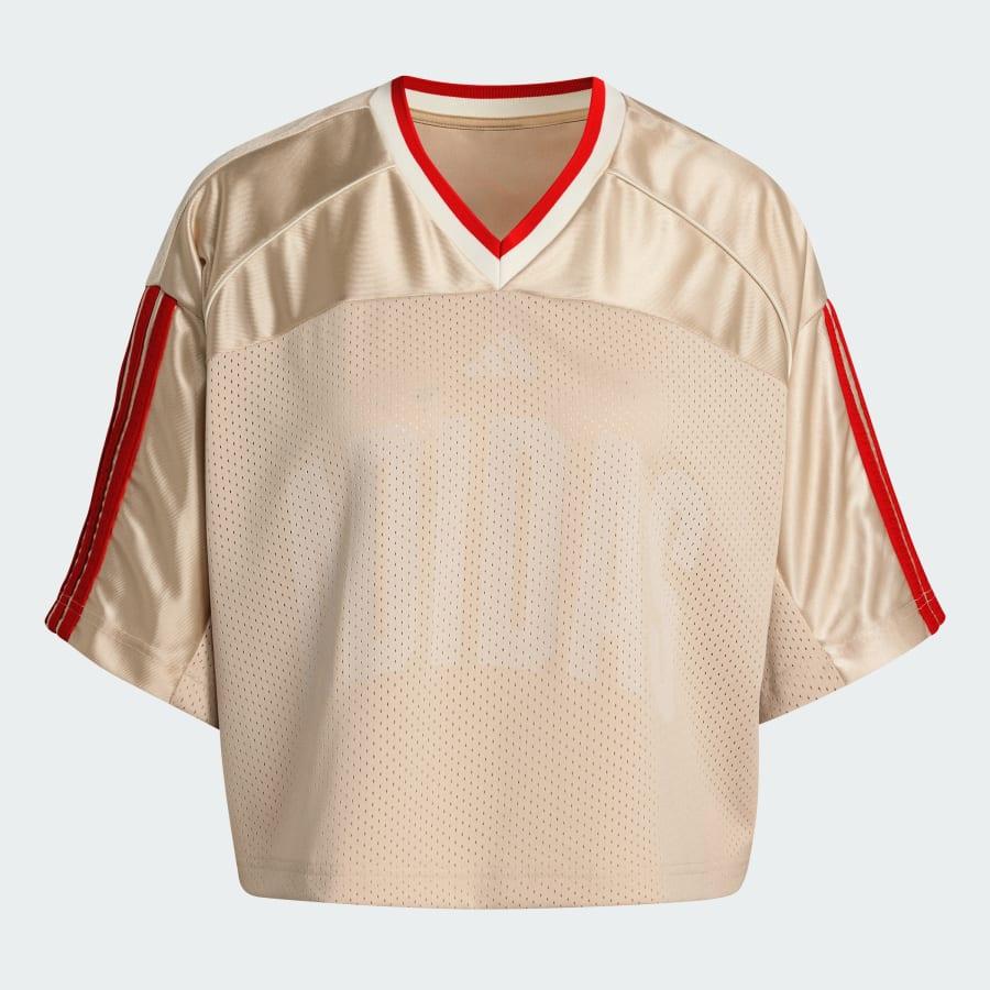 Loose fit","V-neck","100% polyester (100% recycled)","Mesh construction","Slightly cropped","Satin piping","Tricot panel on the shoulder","adidas Sportswear print on front chest"
