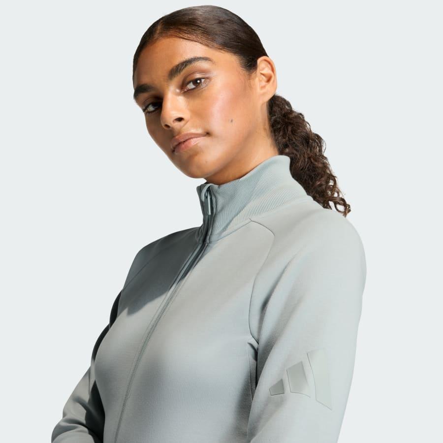 Slim fit","Full zip","Peached spacer fabric","Back length 52 cm","Stand-up rib collar","Underarm gusset","Raglan sleeve","Two-way zip"