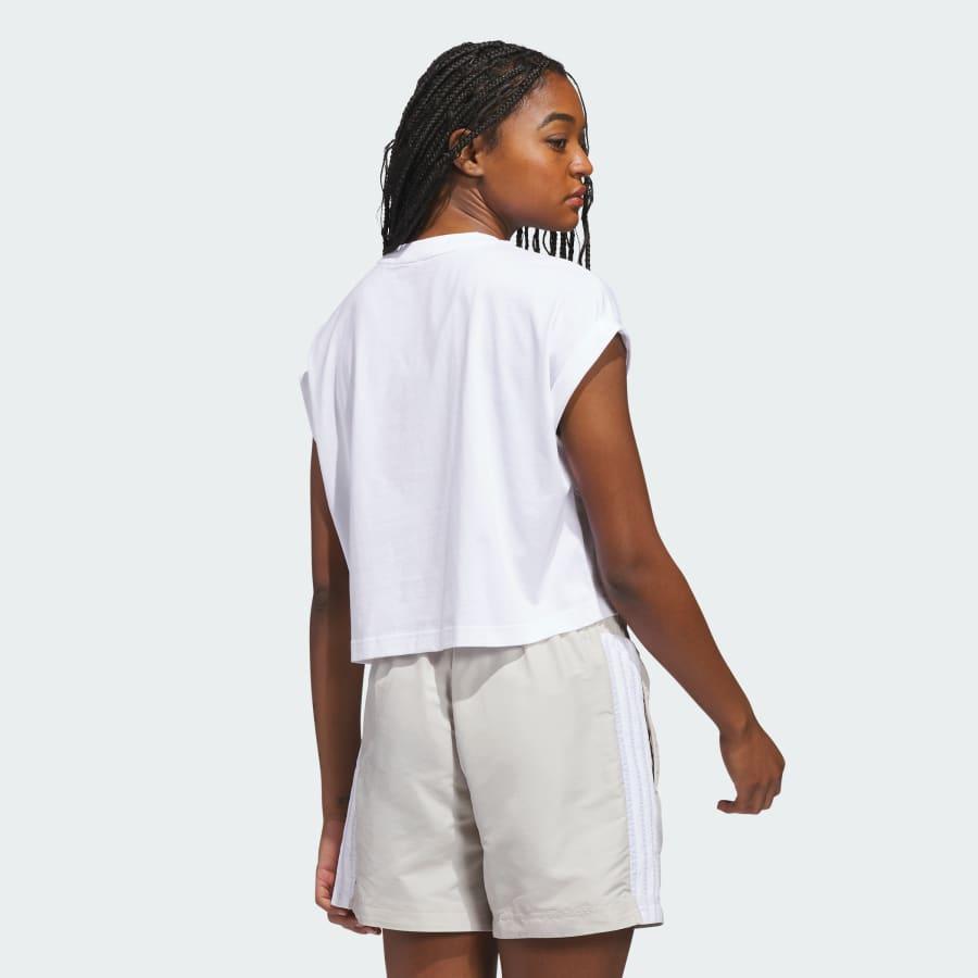 Loose fit\n\n","Ribbed crewneck\n\n","100% cotton\n\n","Single jersey fabric\n\n","Meet and greet length\n\n","Adidas print on graphic\n\n"