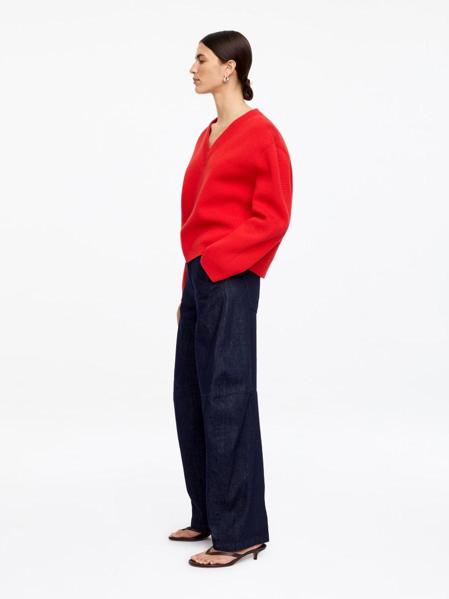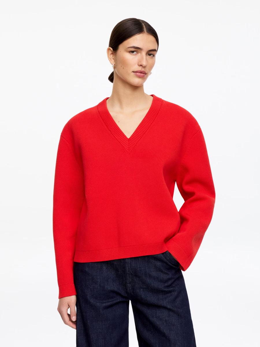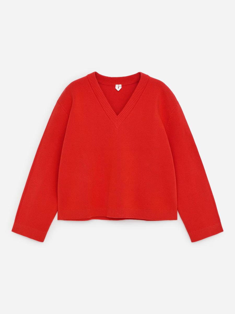 Characterised by its sharp V-neck, this cotton jumper offers a relaxed silhouette. Layer it over a crisp shirt or a crew-neck T-shirt, or tie it around your waist as a styling detail.ARKET/Women's clothes/Women's knitwear/Women’s V-neck knitwear