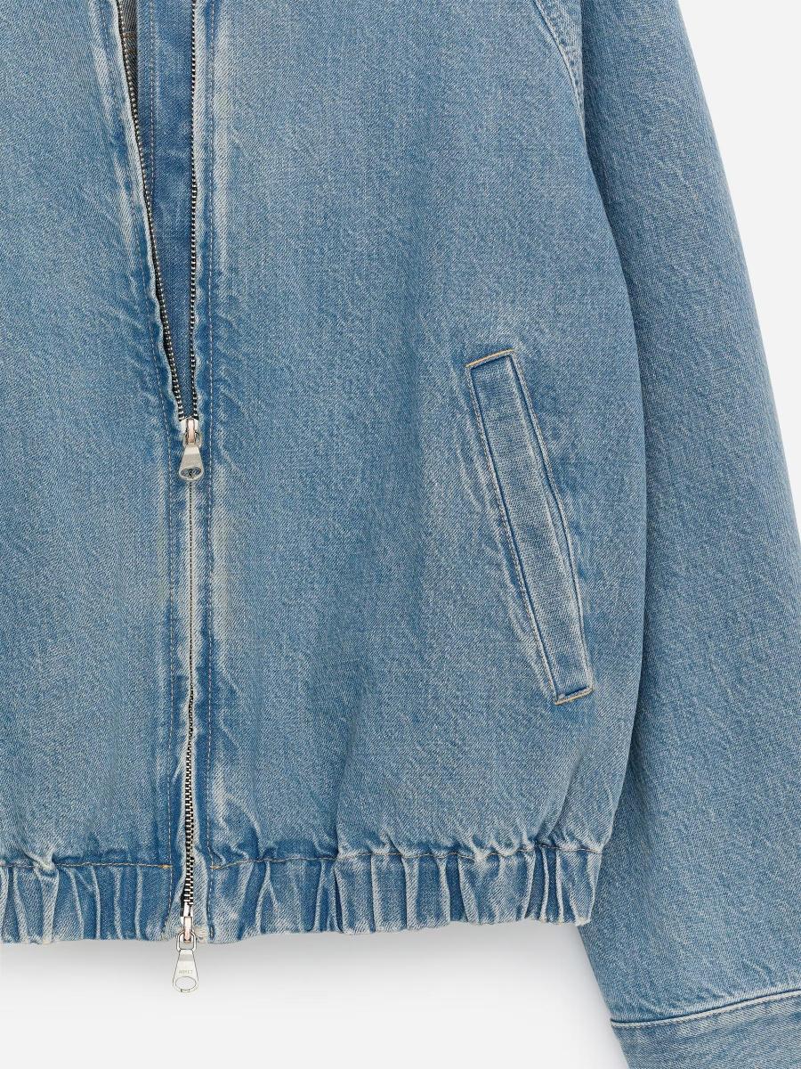 A short denim jacket in cotton, defined by an elasticated waist and twisted sleeves. Designed as an easy zip-up style with front pockets and a funnel collar.ARKET/Women's clothes/Women's coats and jackets