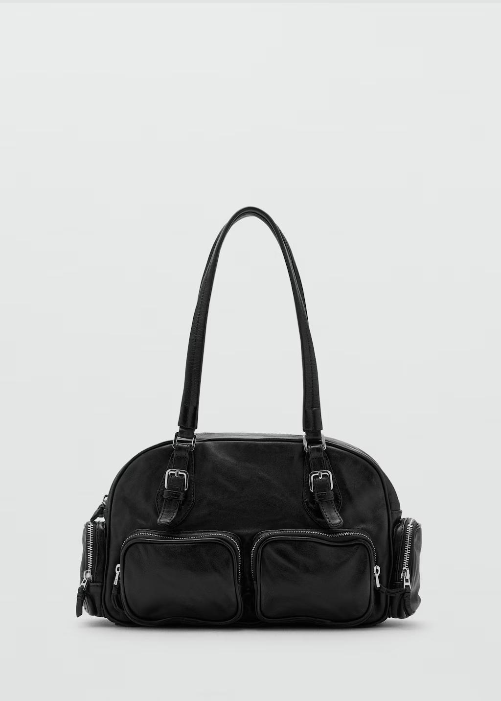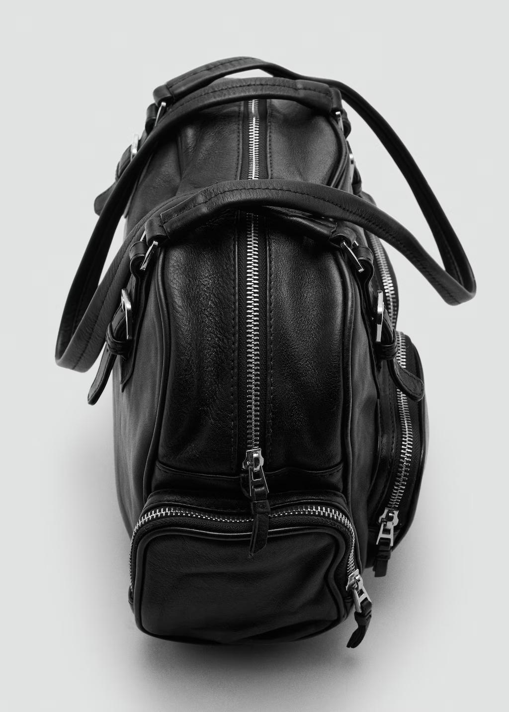 100% piel bovino. Tamaño grande. Estilo bowling. Dos asas de hombro. Dos bolsillos en la parte delantera con cierre de cremallera. Dos bolsillos laterales de cremallera. Cierre de cremallera. Forro interior. Exclusivo Online. 38.0x19.0x12.0 cm (Largo x Alto x Ancho)