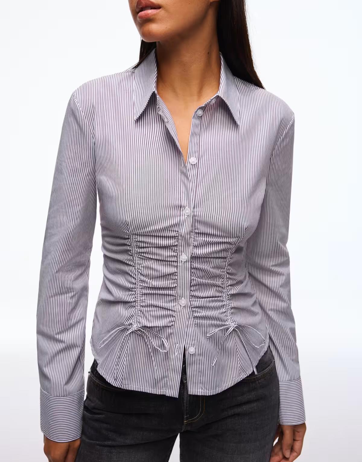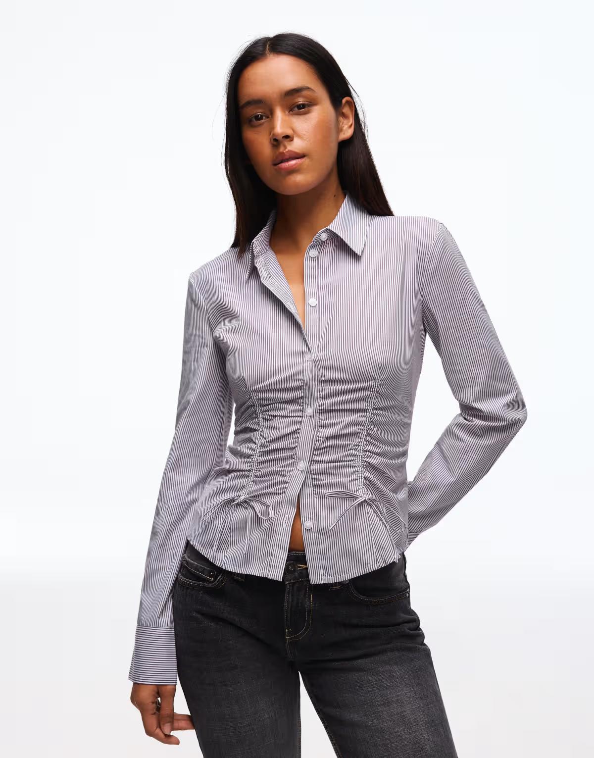 Bershka Gathered poplin shirt in brown