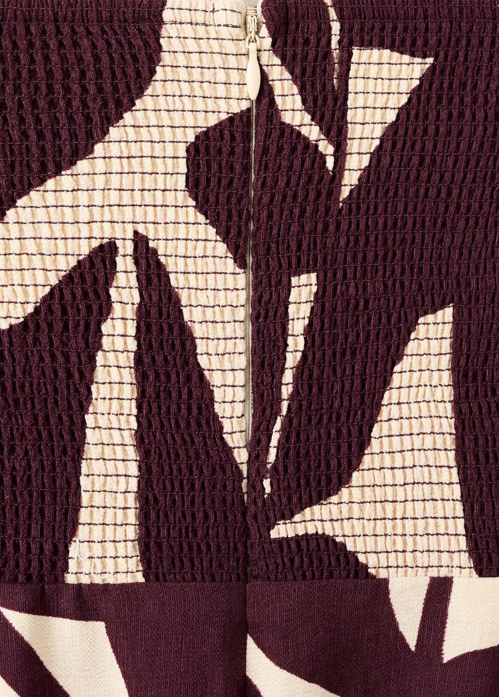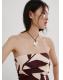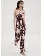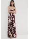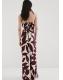 Diseño recto. Diseño largo. Estampado de plumas. Escote palabra de honor. Sin mangas. Cierre de cremallera en la parte posterior. Forro interior