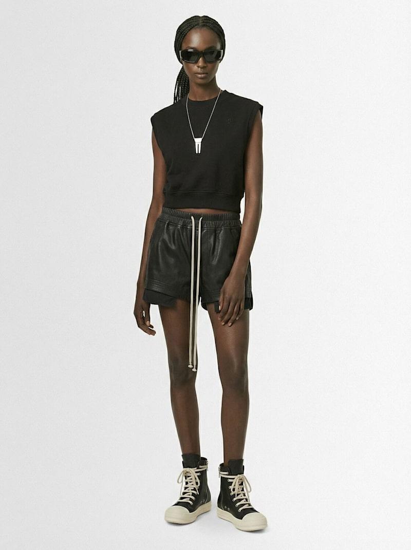 Fog皮革短裤 - 黑色 - 女士 - Rick Owens - 抽绳弹力腰头
