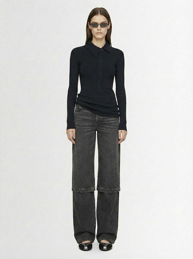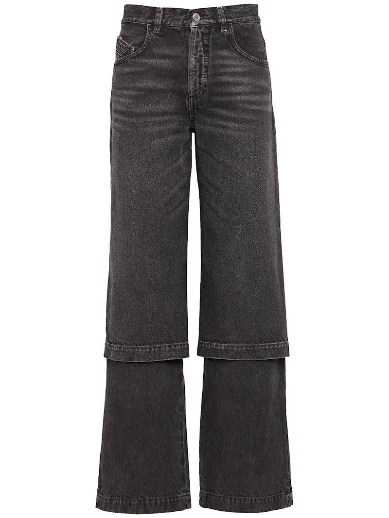 层叠宽松牛仔裤 - 黑色 - 女士 - The Attico - 正面纽扣和隐藏式拉链开合.