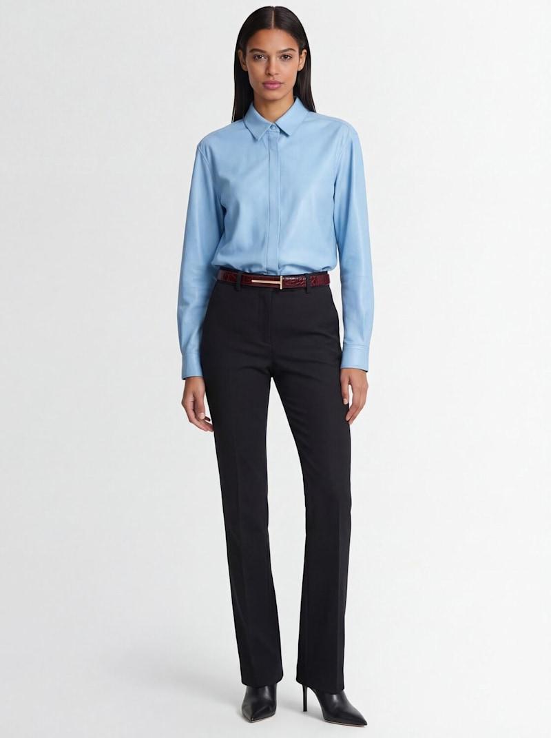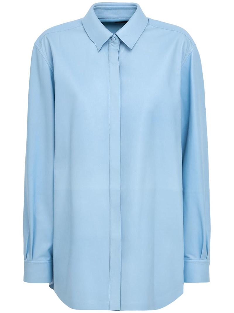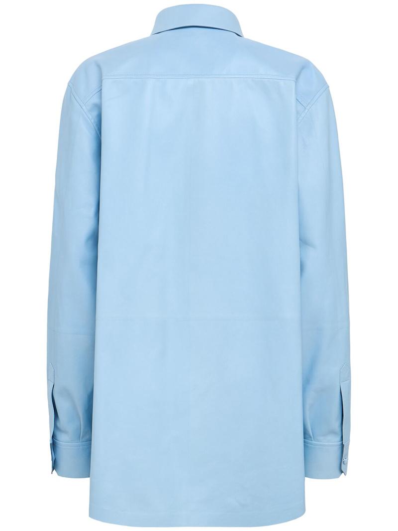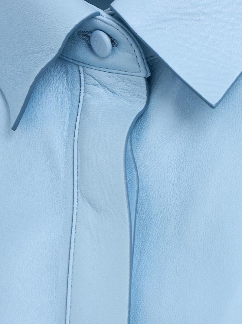 法式植鞣皮革衬衫 - 浅蓝色 - 女士 - Tom Ford - 正面纽扣开合.