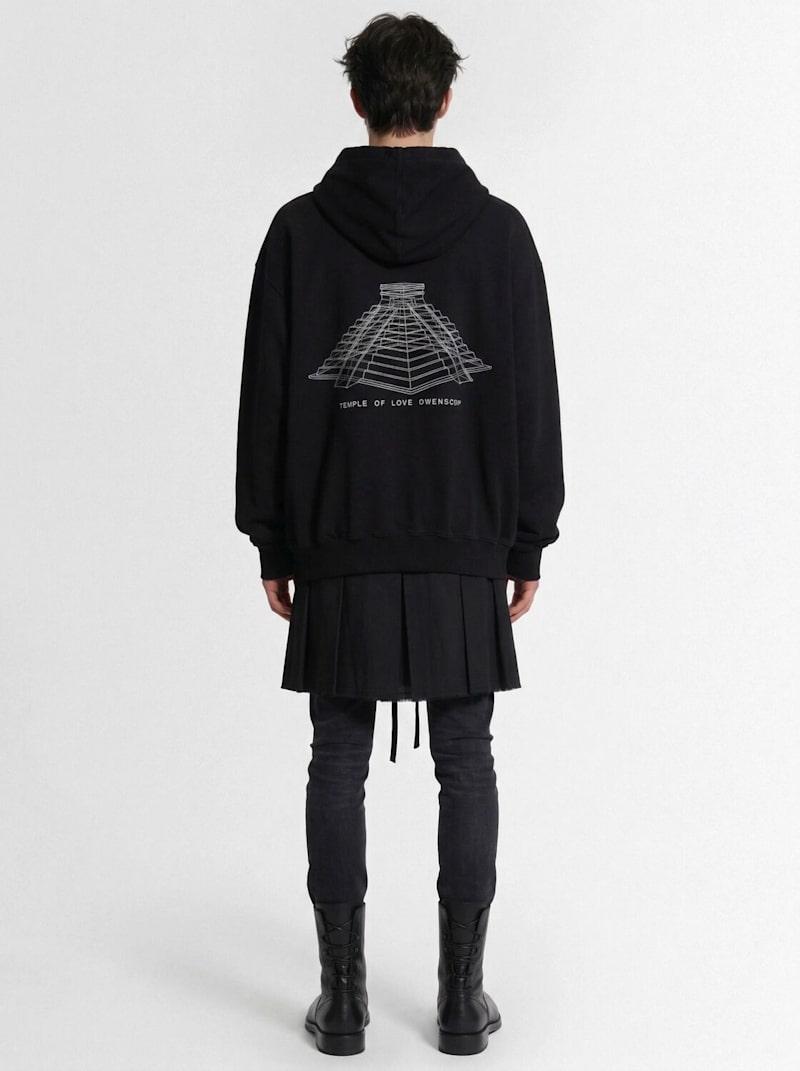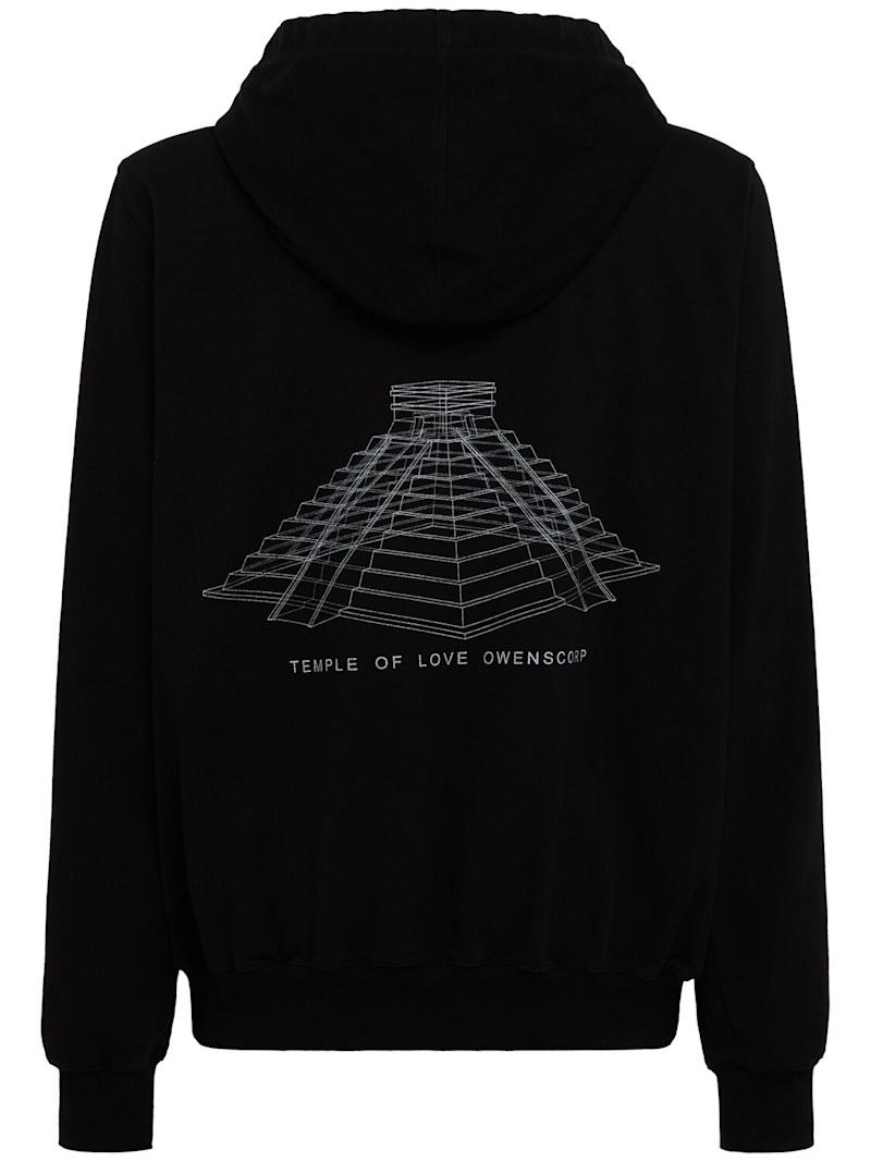 Printed cotton hoodie - 黑色 - 男士 - Rick Owens - Non-detachable hood with drawstring.