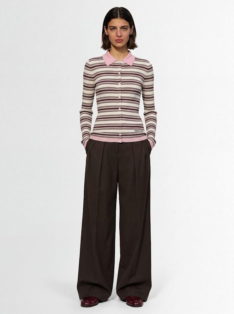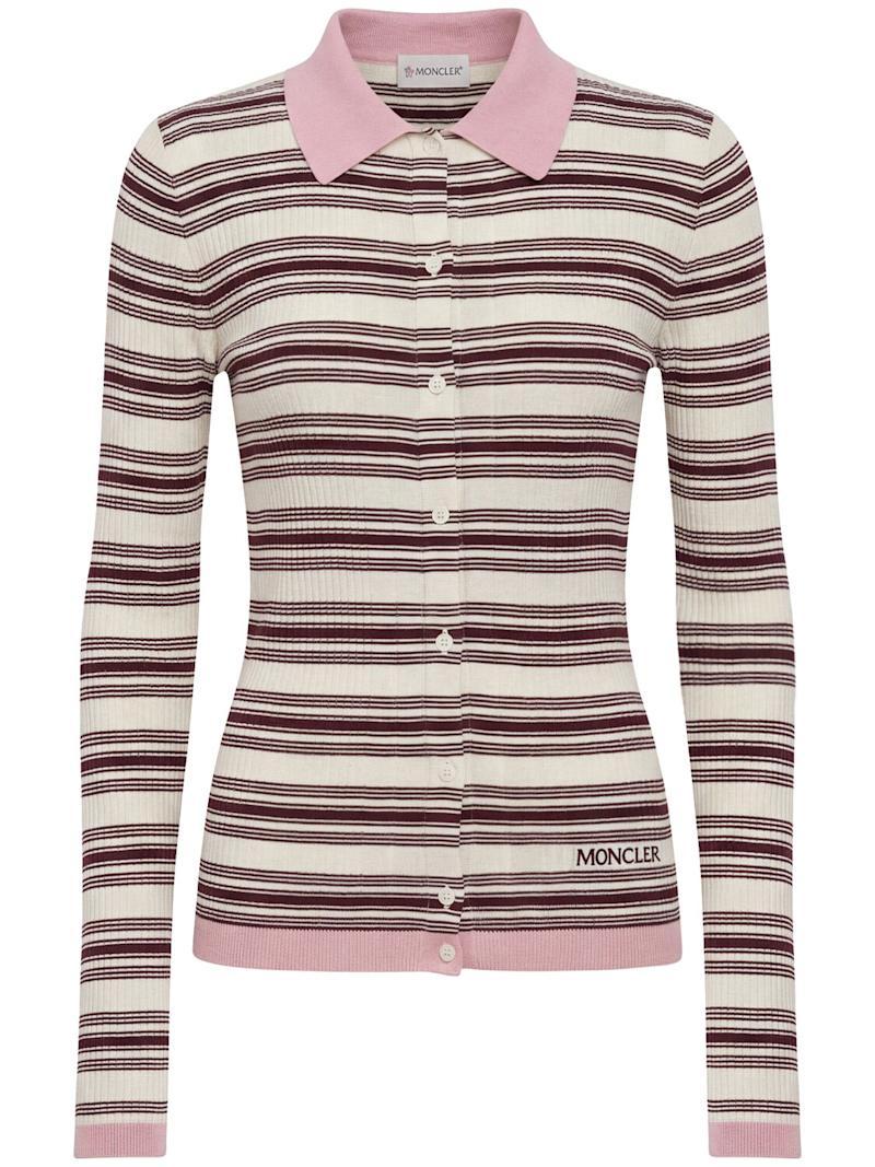 Striped cotton long sleeve polo shirt - 白色/棕色 - 女士 - Moncler